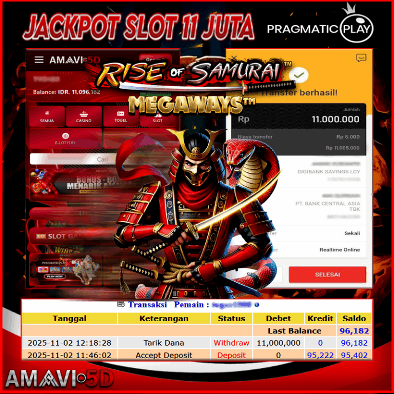 AMAVI5D JACKPOT SLOT Rise Of Samurai Megaways Rp 11.000.000,- LUNAS, MINGGU, 02 NOVEMBER 2025Selamat kepada User id :TAM****21 Telah berhasil mendapatkan kemenangan besar pada permainanSLOT Rise Of Samurai Megaways kemenangan Sebesar Rp11.000.000, Setelah mengisi formulir withdraw dengan kurung waktu hanya 5 – 10 menit pihak amavi5d sudah melakukan transfer kepada pemilik User id dan dana…