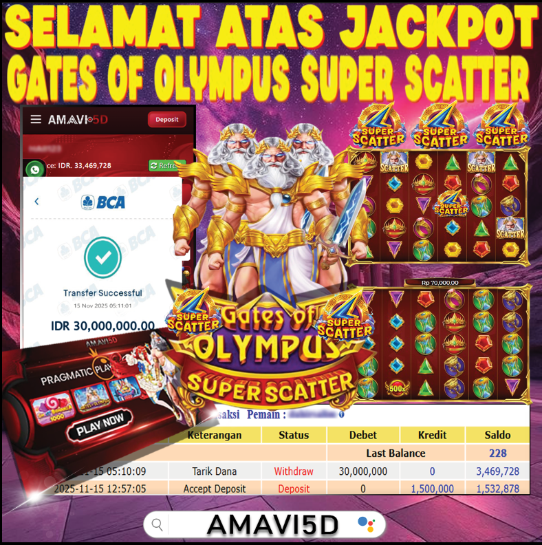 AMAVI5D JACKPOT SLO GATES OF OLYMPUS SUPER SCATTER Rp 30.000.000,– LUNAS, SAPTU,15 NOVEMBER 2025 Selamat kepada User id :SAN***52 Telah berhasil mendapatkan kemenangan besar pada permainan