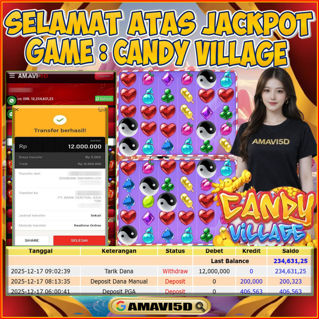 AMAVI5D JACKPOT SLOT CANDY VILLAGE Rp 12.000.000- LUNAS, RABU ,17 DESEMBER 2025 Selamat kepada User id :YOGI***11Telah berhasil mendapatkan kemenangan besar pada permainan