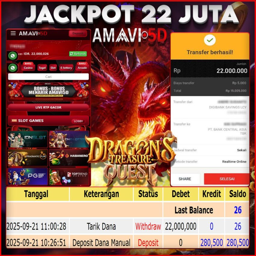 AMAVI5D JACKPOT SLOT DRAGONS TREASURE QUEST Rp.22.000.000,- LUNAS MINGGU, 21 SEPTEMBER 2025