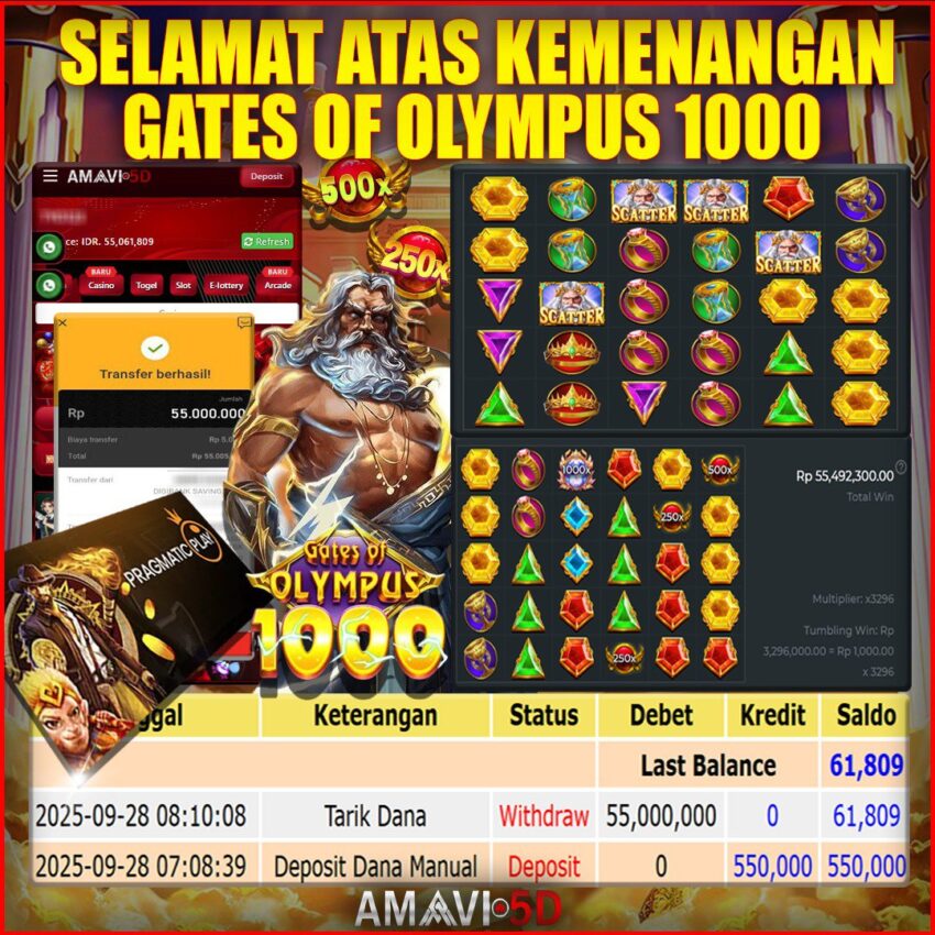 AMAVI5D JACKPOT SLOT GATES OF OLYMPUS 1000 Rp55.000.000,- LUNAS, MINGGU, 28 SEPTEMBER 2025