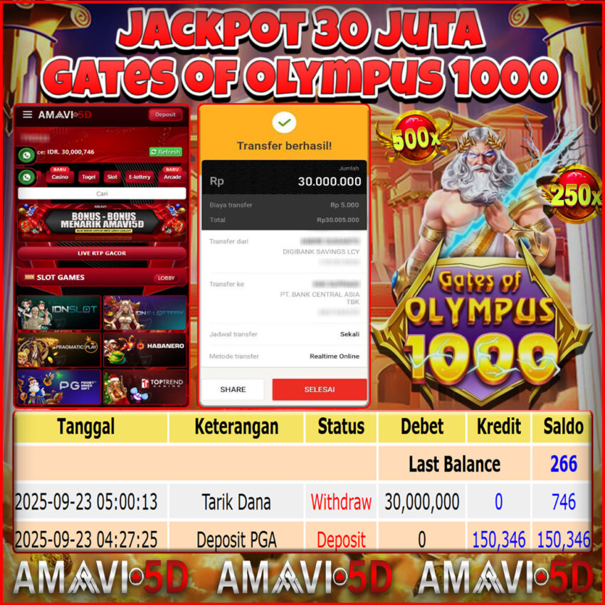 AMAVI5D JACKPOT SLOT GATES OF OLYMPUS 1000 Rp30.000.000,- LUNAS SELASA, 23 SEPTEMBER 2025