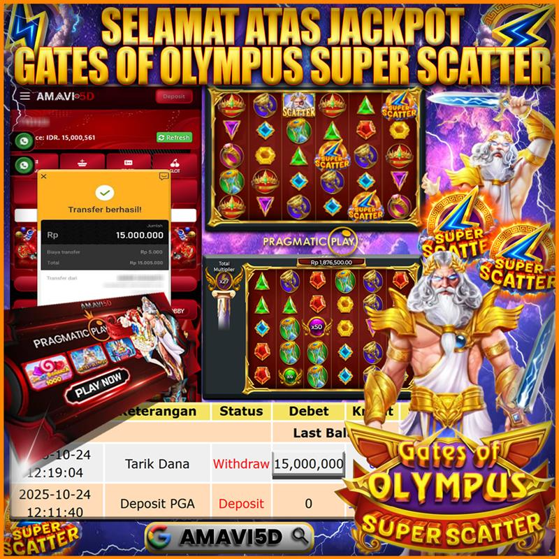 SLOT GATES OF OLYMPUS SUPER SCATTER kemenangan Sebesar Rp15.000.000, Setelah mengisi formulir withdraw dengan kurung waktu hanya 5 – 10 menit pihak amavi5d sudah melakukan transfer kepada pemilik User id dan dana sudah dapat di cairkan oleh pemenang. Bukti pembayaran yang kami berikan merupakan bukti pembayaran yang SAH / VALID yang langung di dapatkan melaui tanda transfer transaksi dari Bank yang di tuju. Kami mengucapakan banyak Terima Kasih Kepada pemenang karena sudah mempercayakan kami sebagai Bandar Tepercaya yang membayar semua kemenangan member hingga lunas. Masih ragu dengan amavi5d bos ? Di mana bandar togel online sekarang yang terpercaya seperti amavi5d? Bandar yang mengirimkan kemenangan member tanpa bertele – tele. Jadi…. tidak perlu khwatir pada situs amavi5d karena kemenangan anda berapapun akan dibayarakan hingga lunas kepada pemenang.