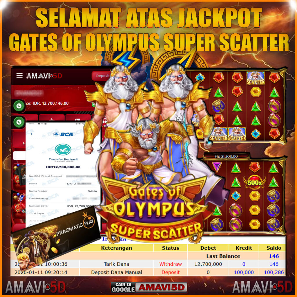 SLOT GATES OF OLYMPUS SUPER SCATTER kemenangan Sebesar Rp12,700.000, Setelah mengisi formulir withdraw dengan kurung waktu hanya 5 – 10 menit pihak amavi5d sudah melakukan transfer kepada pemilik User id dan dana sudah dapat di cairkan oleh pemenang. Bukti pembayaran yang kami berikan merupakan bukti pembayaran yang SAH / VALID yang langung di dapatkan melaui tanda transfer transaksi dari Bank yang di tuju. Kami mengucapakan banyak Terima Kasih Kepada pemenang karena sudah mempercayakan kami sebagai Bandar Tepercaya yang membayar semua kemenangan member hingga lunas. Masih ragu dengan amavi5d bos ? Di mana bandar togel online sekarang yang terpercaya seperti amavi5d? Bandar yang mengirimkan kemenangan member tanpa bertele – tele. Jadi…. tidak perlu khwatir pada situs amavi5d karena kemenangan anda berapapun akan dibayarakan hingga lunas kepada pemenang