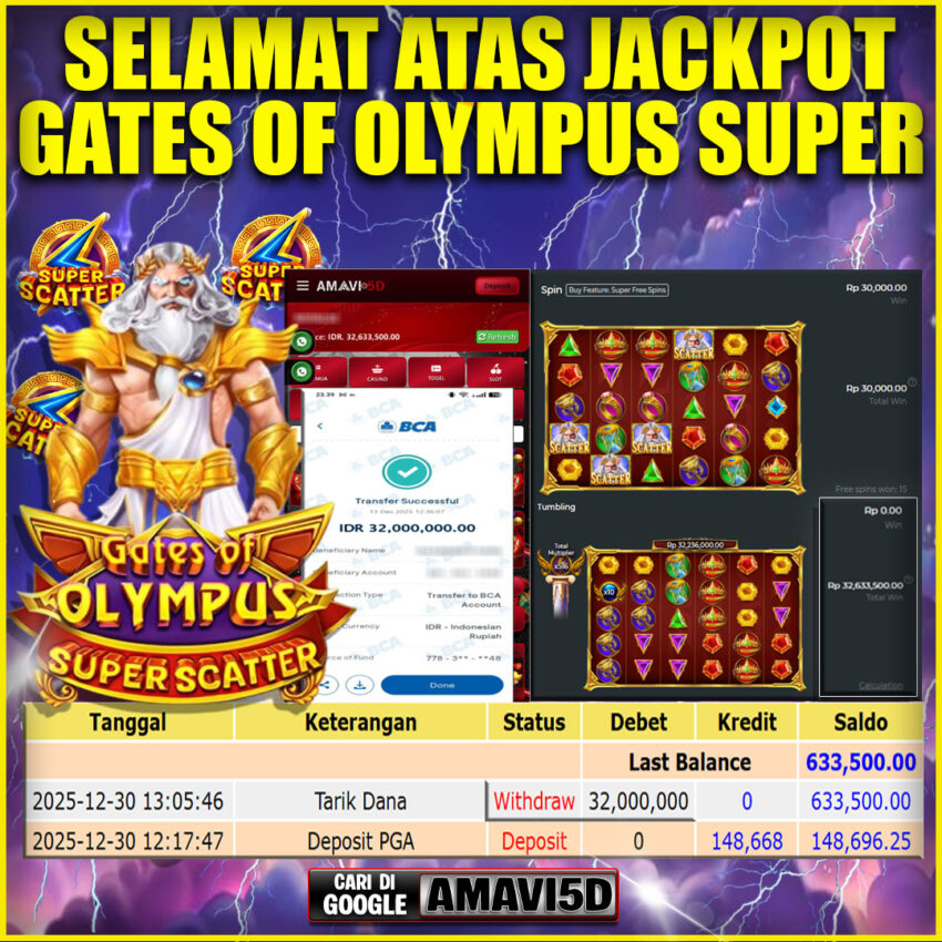 AMAVI5D JACKPOT SLOT GATES OF OLYMPUS SUPER SCATTER Rp32.000.000- SELASA , ,30 DESEMBER 2025 Selamat kepada User id : JASIKA***SNN Telah berhasil mendapatkan kemenangan besar pada permainan