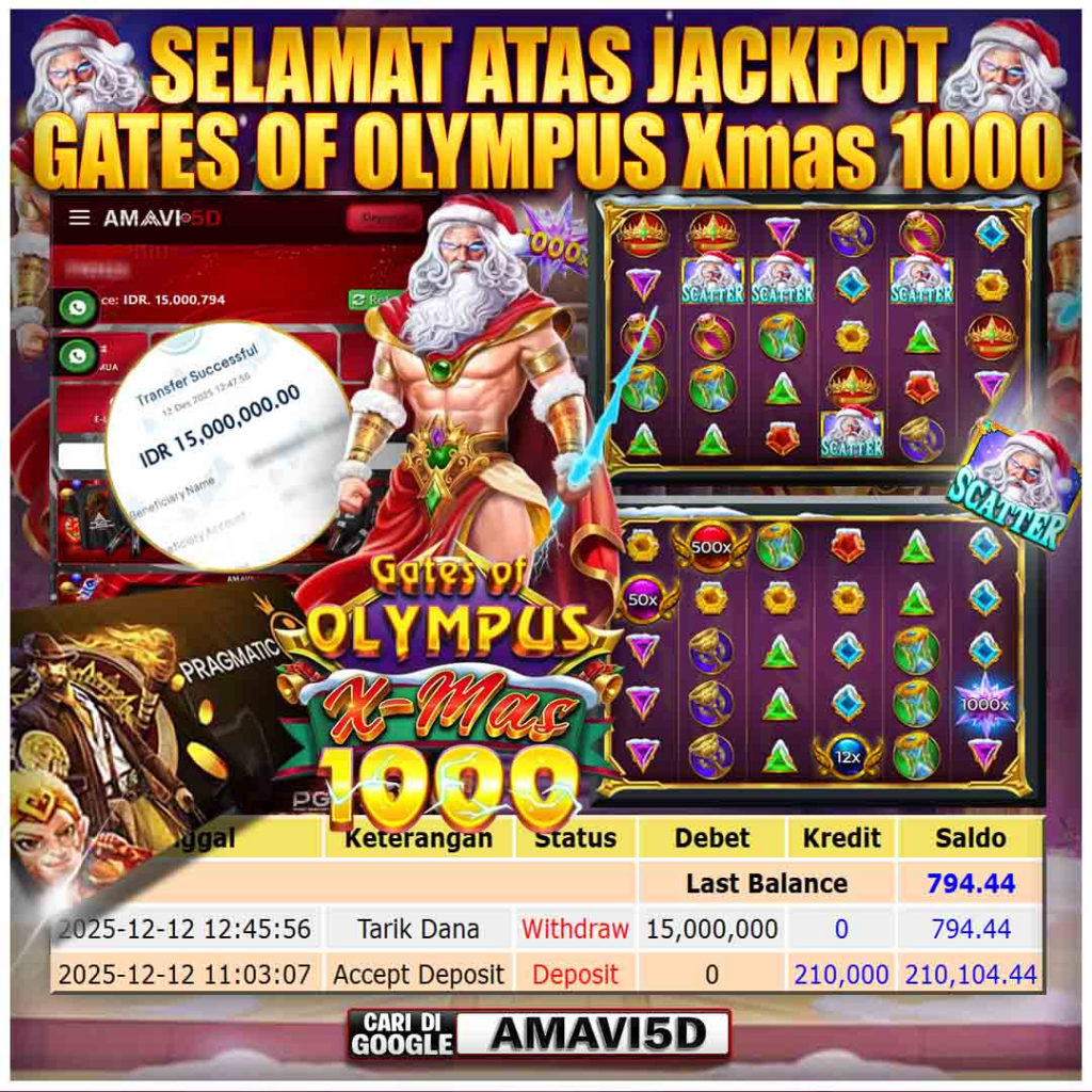 AMAVI5D JACKPOT SLOT GATES OF OLYMPUS XMAS 1000 Rp 15.000.000- LUNAS, JUMAT ,12 DESEMBER 2025 Selamat kepada User id :jnes***22 Telah berhasil mendapatkan kemenangan besar pada permainan