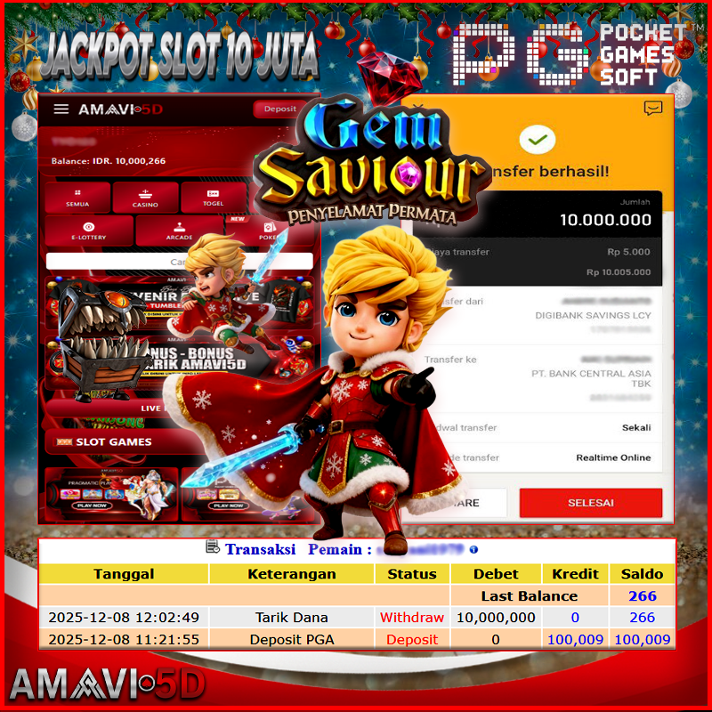 AMAVI5D JACKPOT SLOT GEM SAVIOUR Rp 10.000.000- LUNAS, SENIN ,08 DESEMBER 2025 Selamat kepada User id : sejat****65 Telah berhasil mendapatkan kemenangan besar pada permainan