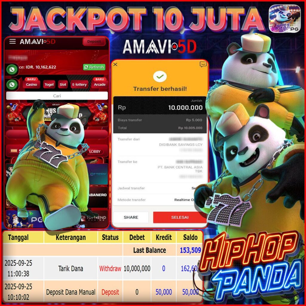 AMAVI5D JACKPOT SLOT HIP HOP PANDA Rp10.000.000,- LUNAS, KAMIS, 25 SEPTEMBER 2025