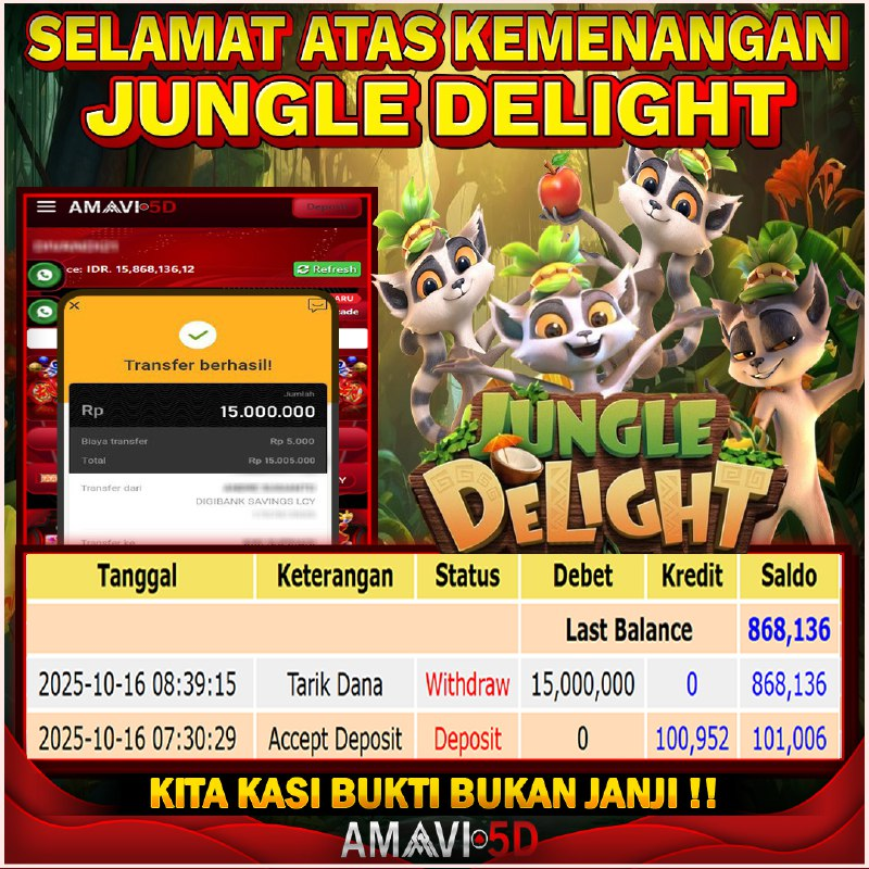 AMAVI5D JACKPOT SLOT JUNGLE DELIGHT Rp15.000.000,- LUNAS, SENIN 13 OKTOBER 2025