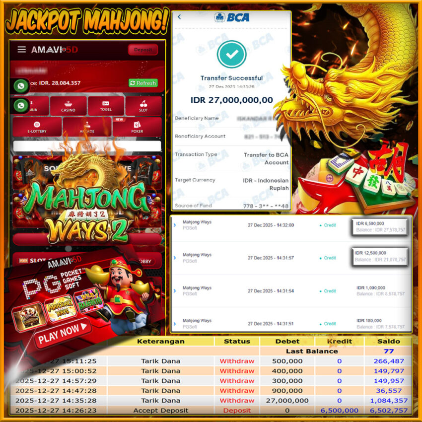AMAVI5D JACKPOT SLOT MAHJONG WASY 2 Rp27.000.000- SABTU, ,27 DESEMBER 2025 Selamat kepada User id :dikino****di Telah berhasil mendapatkan kemenangan besar pada permainan