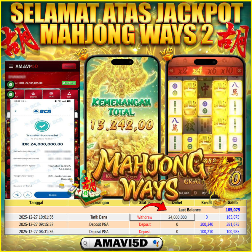 AMAVI5D JACKPOT SLOT MAHJONG WAYS 2 Rp24.000.000- SABTU, ,27 DESEMBER 2025 Selamat kepada User id :neni***111Telah berhasil mendapatkan kemenangan besar pada permainan