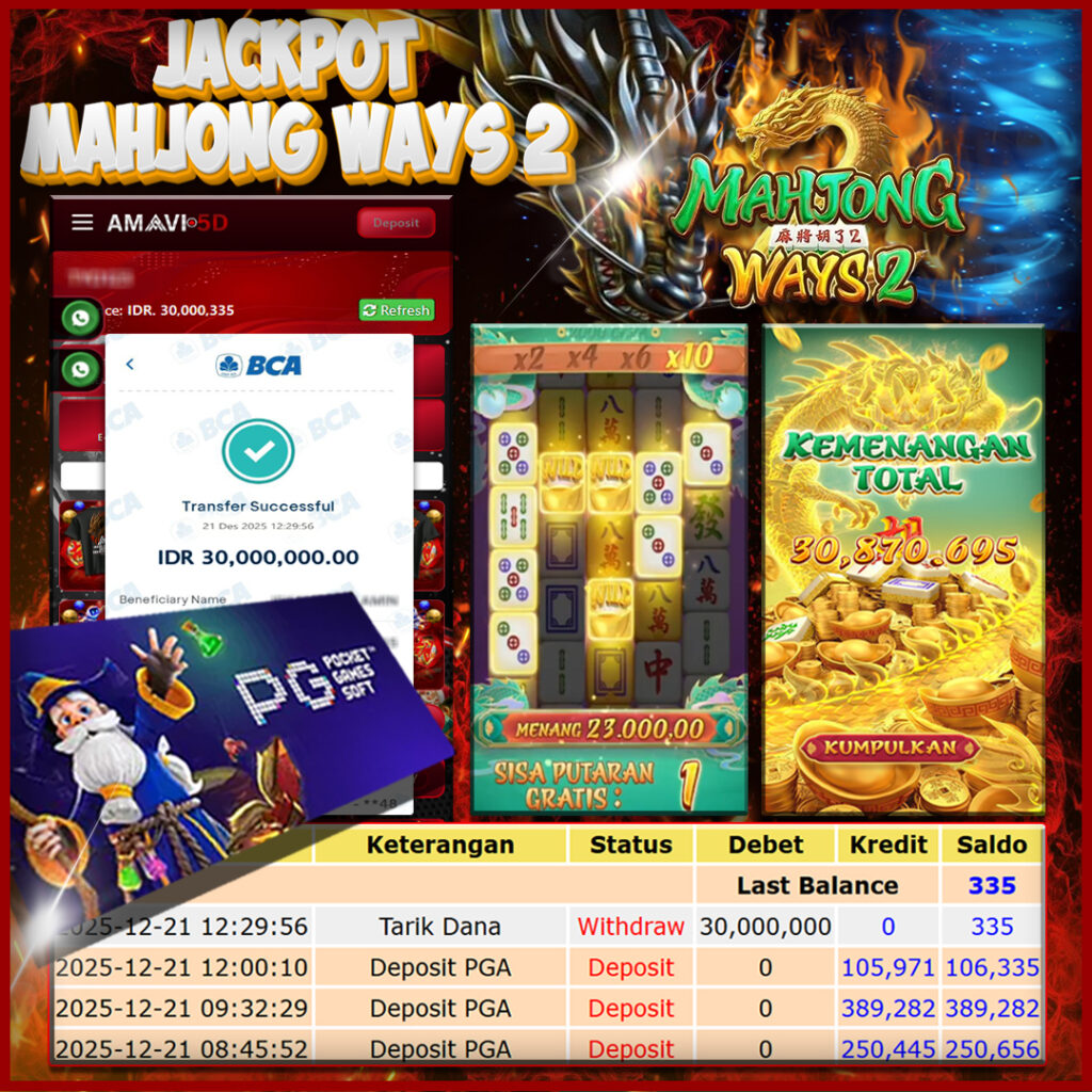 AMAVI5D JACKPOT SLOT MAHJONG WAYS 2 Rp30.000.000- LUNAS, MINGGU ,21 DESEMBER 2025 Selamat kepada User id : yanti***102 Telah berhasil mendapatkan kemenangan besar pada permainan