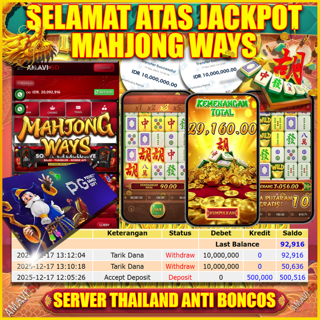 AMAVI5D JACKPOT SLOT MAHJONG WAYS Rp 20.000.000- LUNAS, RABU ,17 DESEMBER 2025 Selamat kepada User id :osie****ne Telah berhasil mendapatkan kemenangan besar pada permainan