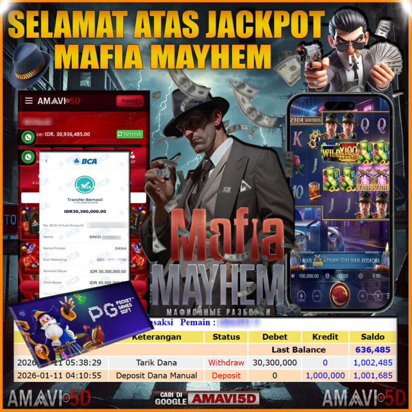 AMAVI5D JACKPOT SLOT MAKFIA MAYHEM Rp30,300.000- MINGGU,11 JANUARY 2026 Selamat kepada User id : SENU***SDE Telah berhasil mendapatkan kemenangan besar pada permainan