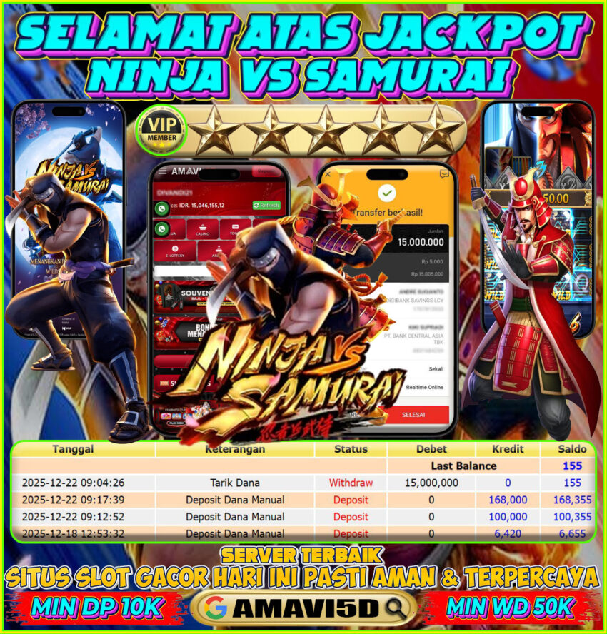 AMAVI5D JACKPOT SLOT NINJA VS SAMURAI Rp15.000.000- LUNAS, SENIN ,22 DESEMBER 2025 Selamat kepada User id : sene***114 Telah berhasil mendapatkan kemenangan besar pada permainan