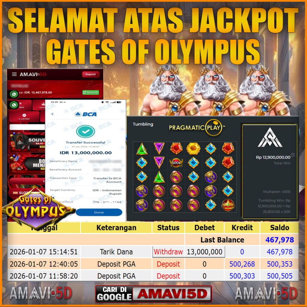 SLOT SLOT GATES OF OLYMPUS kemenangan Sebesar Rp12,000.000, Setelah mengisi formulir withdraw dengan kurung waktu hanya 5 – 10 menit pihak amavi5d sudah melakukan transfer kepada pemilik User id dan dana sudah dapat di cairkan oleh pemenang. Bukti pembayaran yang kami berikan merupakan bukti pembayaran yang SAH / VALID yang langung di dapatkan melaui tanda transfer transaksi dari Bank yang di tuju. Kami mengucapakan banyak Terima Kasih Kepada pemenang karena sudah mempercayakan kami sebagai Bandar Tepercaya yang membayar semua kemenangan member hingga lunas. Masih ragu dengan amavi5d bos ? Di mana bandar togel online sekarang yang terpercaya seperti amavi5d? Bandar yang mengirimkan kemenangan member tanpa bertele – tele. Jadi…. tidak perlu khwatir pada situs amavi5d karena kemenangan anda berapapun akan dibayarakan hingga lunas kepada pemenang