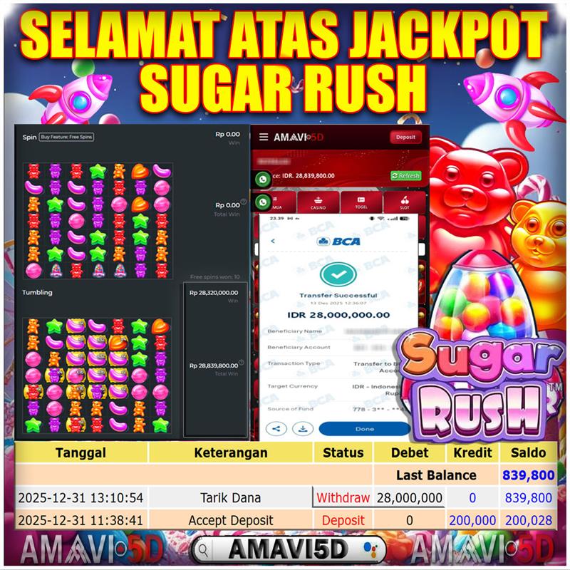 AMAVI5D JACKPOT SLOT SUGAR RUSH Rp28.000.000- RABU, ,31 DESEMBER 2025 Selamat kepada User id :KINE**1000 Telah berhasil mendapatkan kemenangan besar pada permainan
