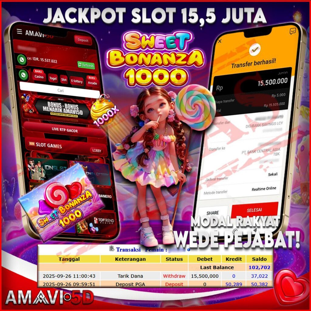 AMAVI5D JACKPOT SLOT SWEET BONANZA 1000 Rp15.500.000,- LUNAS, JUMAT, 26 SEPTEMBER 2025