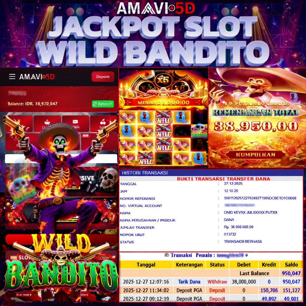 SLOT WILD BANDITO kemenangan Sebesar Rp38.000.000, Setelah mengisi formulir withdraw dengan kurung waktu hanya 5 – 10 menit pihak amavi5d sudah melakukan transfer kepada pemilik User id dan dana sudah dapat di cairkan oleh pemenang. Bukti pembayaran yang kami berikan merupakan bukti pembayaran yang SAH / VALID yang langung di dapatkan melaui tanda transfer transaksi dari Bank yang di tuju. Kami mengucapakan banyak Terima Kasih Kepada pemenang karena sudah mempercayakan kami sebagai Bandar Tepercaya yang membayar semua kemenangan member hingga lunas. Masih ragu dengan amavi5d bos ? Di mana bandar togel online sekarang yang terpercaya seperti amavi5d? Bandar yang mengirimkan kemenangan member tanpa bertele – tele. Jadi…. tidak perlu khwatir pada situs amavi5d karena kemenangan anda berapapun akan dibayarakan hingga lunas kepada pemenang.
