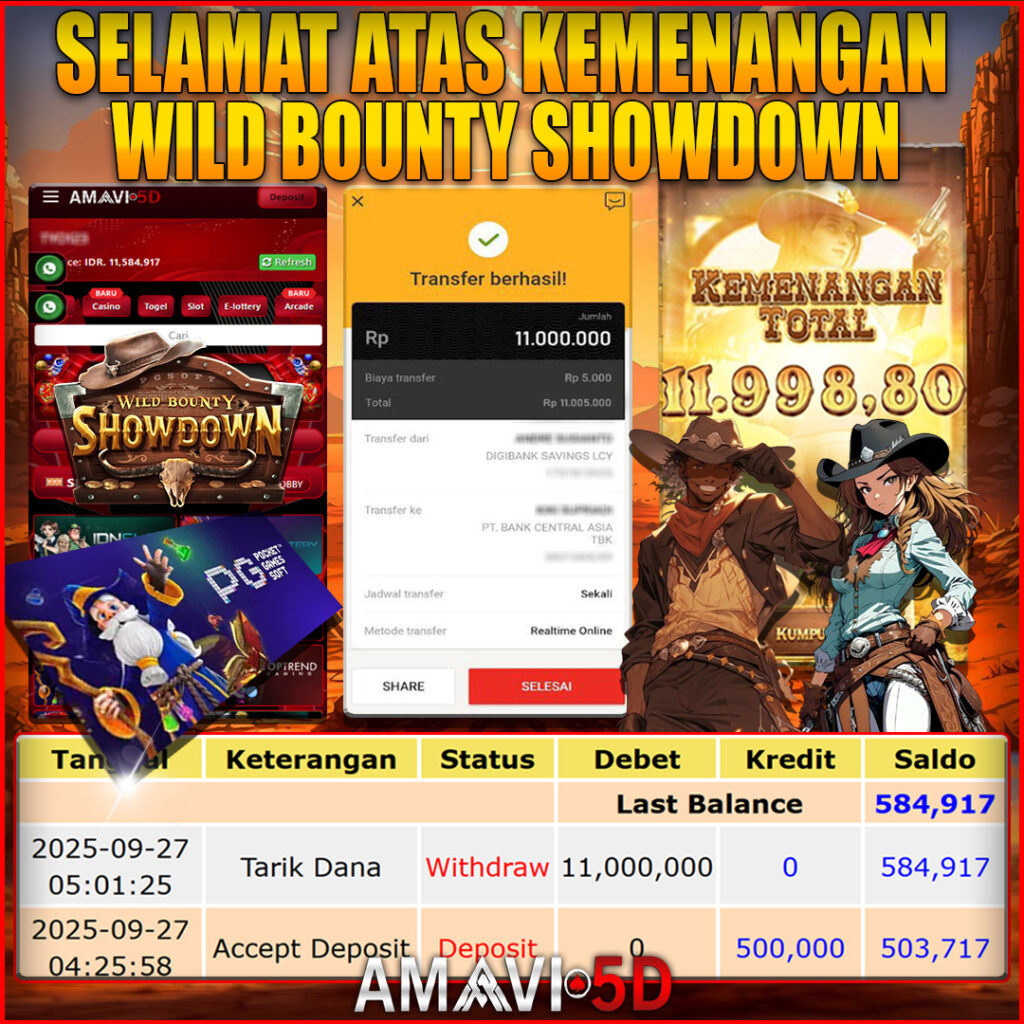 AMAVI5D JACKPOT SLOT WILD BOUNTY SHOWDOWN Rp11.000.000,- LUNAS, SABTU, 27 SEPTEMBER 2025