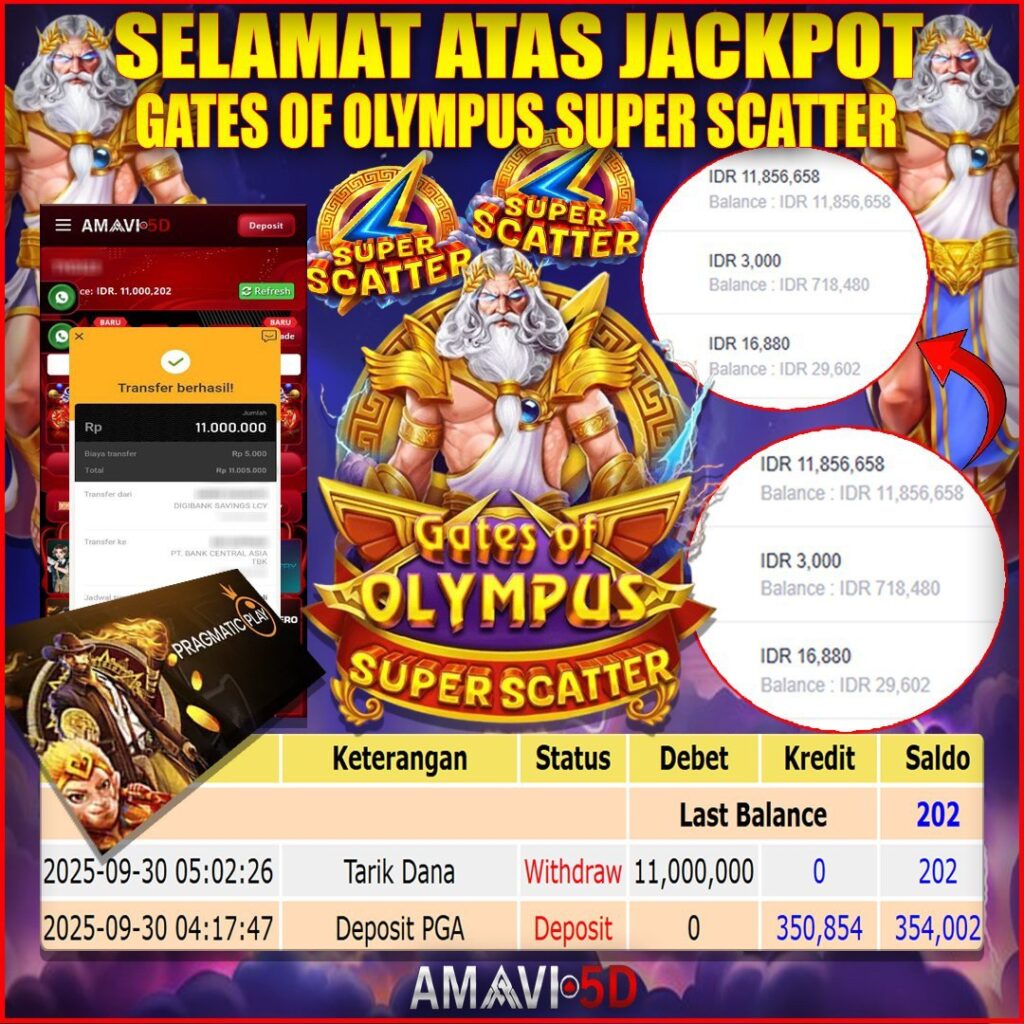 AMAVI5D JACKPOT SLOT GATES OF OLYMPUS SUPER SCATTER Rp11.000.000,- LUNAS, SELASA, 30 SEPTEMBER 2025