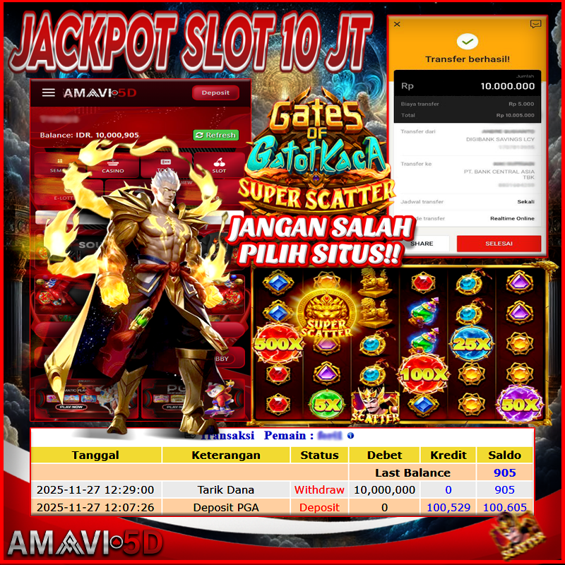 AMAVI5D JACKPOT SLOT GATES OF GATOT KACA SUPER SCATTER Rp 10.000.000,– LUNAS, KAMIS ,27 NOVEMBER 2025 Selamat kepada User id :Fit**i Telah berhasil mendapatkan kemenangan besar pada permainan