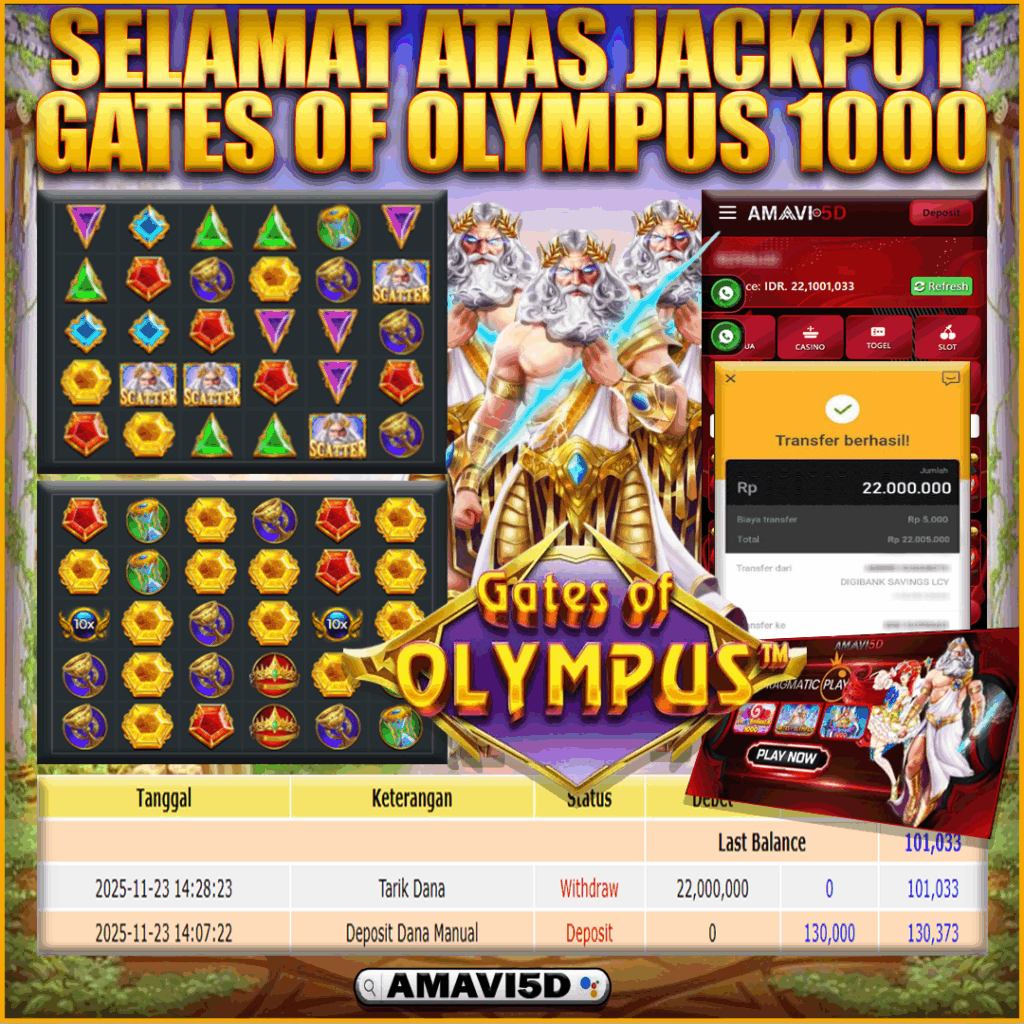 AMAVI5D JACKPOT SLOT GATES OF OLYMPUS 1000 Rp 22.000.000,– LUNAS, MINGGU ,23 NOVEMBER 2025 Selamat kepada User id :fai**07 Telah berhasil mendapatkan kemenangan besar pada permainan