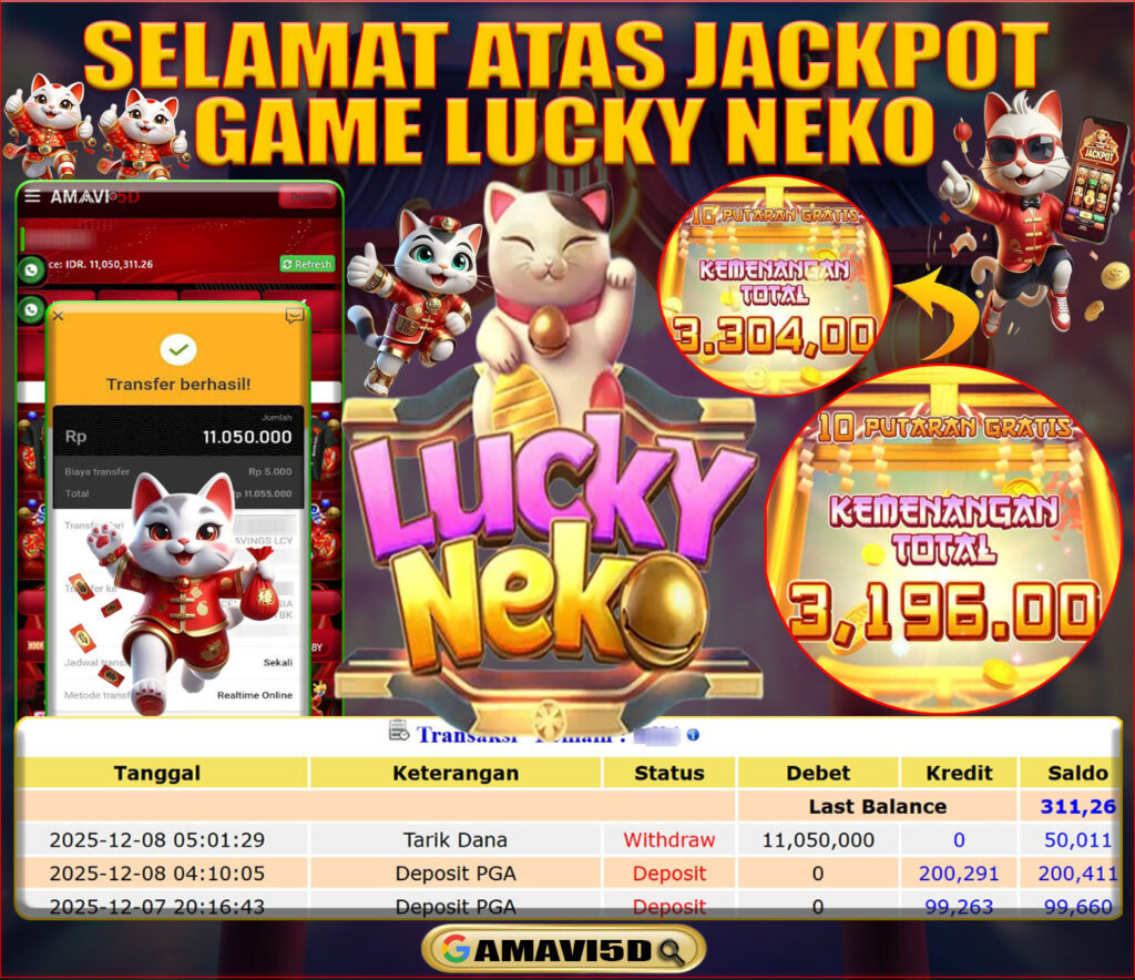 AMAVI5D JACKPOT SLOT LUCKY NEKO Rp11.050.000- LUNAS