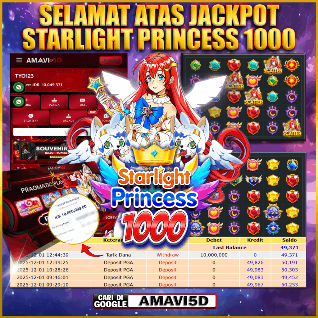 AMAVI5D JACKPOT SLOT STARLIGHT PRINCEES 1000 Rp 10.000.000- LUNAS, SENIN ,01 DESEMBER 2025 Selamat kepada User id : darto**88 Telah berhasil mendapatkan kemenangan besar pada permainan